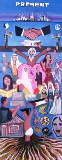 Marcelle Mansour, Past, Present and Future, through Australian Palestinian Eyes. Community Art Exhibition, at the Australian Palestinian Club 1996, and Australia Museum in 1997, supported by Australia Council for the Arts.
